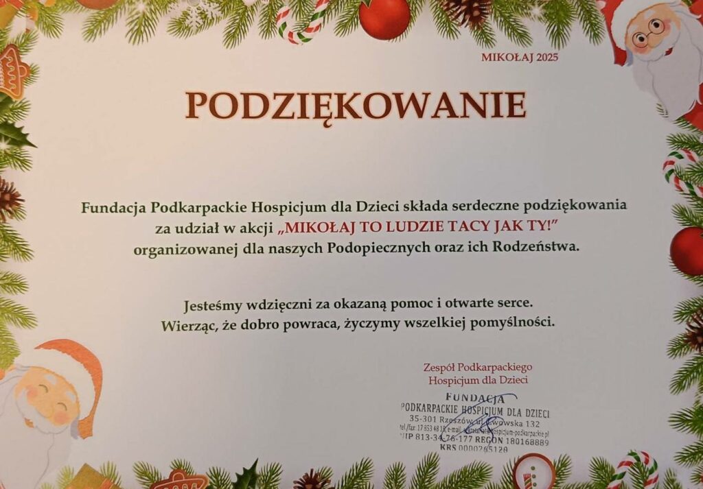 Akcja organizowana jest na rzecz podopiecznych Fundacji Podkarpackie Hospicjum dla Dzieci z siedzibą w Rzeszowie, którzy szczególnie w tym wyjątkowym czasie potrzebują ciepła, wsparcia i życzliwości.